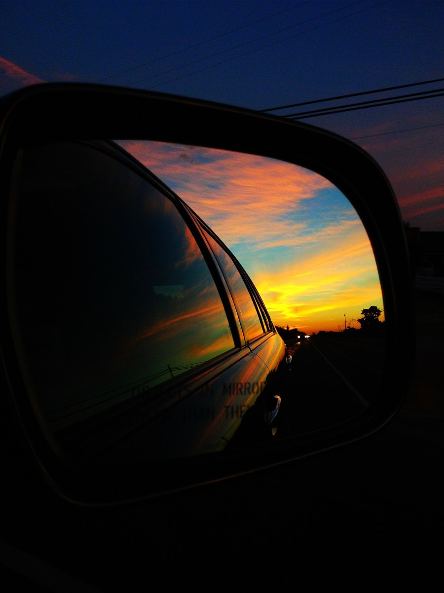 Закат в зеркале заднего вида