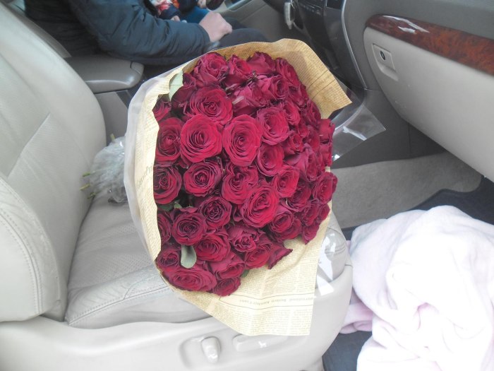 Букет роз в машине